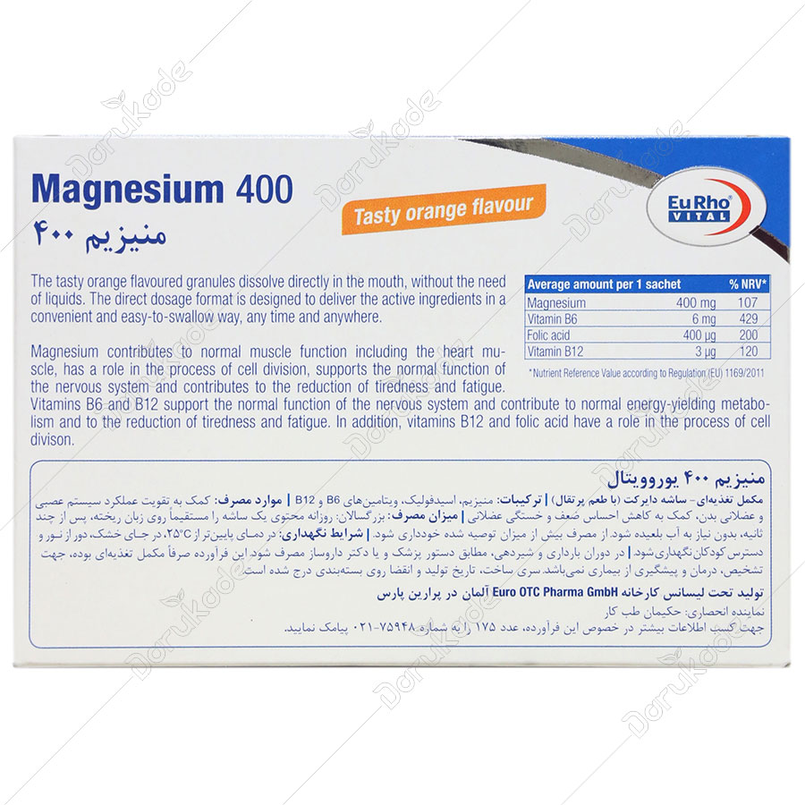 ساشه منیزیم 400 یوروویتال بسته 30 عددی