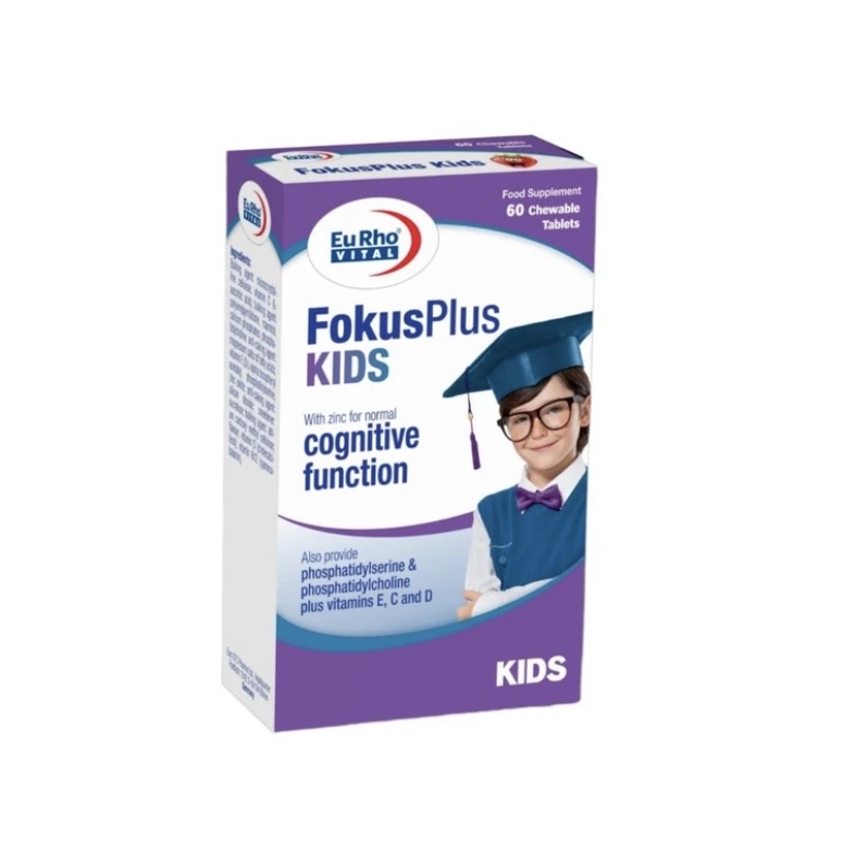 فوکوس پلاس کیدز یوروویتال قرص های جویدنی با طعم توت فرنگی می باشند که مناسب برای کودکان در سنین مدرسه و قبل از آن می باشد.این فرآورده تامین کننده روی، ویتامین های B12 ،C ،D3 ،E به علاوه فسفاتیدیل کولین و فسفاتیدیل سرین در یک ترکیب و فرمولاسیون خاص می باشد.روی یکی از مواد معدنی مهم است که در بسیاری از واکنش ها در بدن نقش دارد، از جمله این ماده در عملکرد طبیعی سیستم عصبی و روان شناختی موثر می باشد. به علاوه ویتامین های B12 و D در تقسیم سلولی نقش دارند. ویتامین های C و E در حفظ سلولها در برابر استرس اکسیداتیو موثر می باشند.فسفاتیدیل سرین و کولین، ترکیبات مهم در ساختار اصلی غشای سلول های عصبی در مغز می باشند.مشخصات
