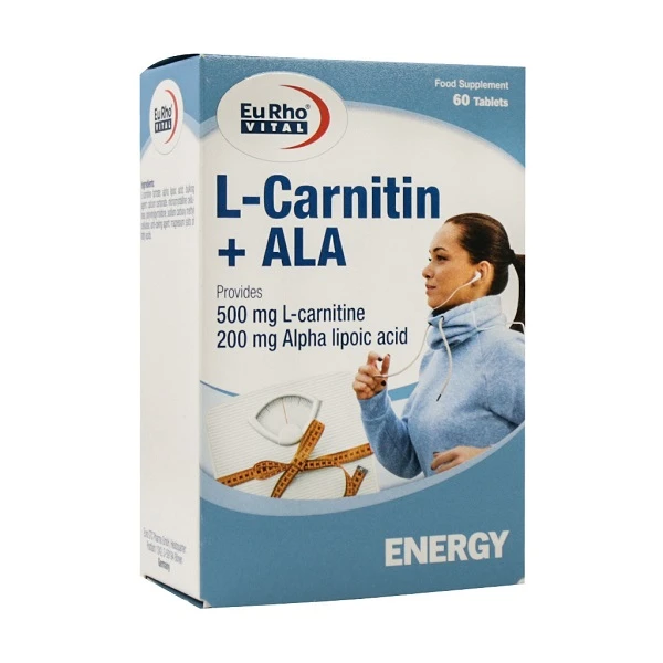 قرص ال کارنیتین و آ ال آ یوروویتال، مکمل تحت لیسانس شرکت Euro OTC Pharma GmbH کشور آلمان، با پروانه ساخت شرکت حکیمان طب کار، در ایران تولید و عرضه می گردد. 500 میلی گرم ال-کارنیتین و 200 میلی گرم آلفا لیپوییک اسید در هر قرص به منظور بهبود سطح انرژی، کمک به چربی سوزی برای تولید انرژی لازم در راستای افزایش استقامت و عملکرد ورزشی فرموله شده است. ال کارنیتین ala در جعبه های مقوایی 60 عددی و به فرم دارویی قرص طراحی شده است.