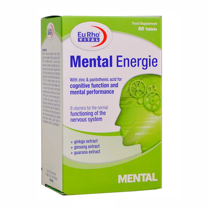 منتال انرژی یک مکمل تقویت حافظه تخصصی برای استفاده در افراد بزرگسال، سالمندان و ورزشکاران می باشد. قرص منتال انرژی تحت لیسانس کمپانی Euro OTC Pharma GmbH آلمان، در ایران تولید می گردد و شرکت حکیمان طب کار دارای پروانه ساخت این محصول می باشد. منتال انرژی یوروویتال در جعبه های 60 عددی به بازار عرضه می گردد و هر جعبه برای مصرف یک ماه کافی می باشد.
