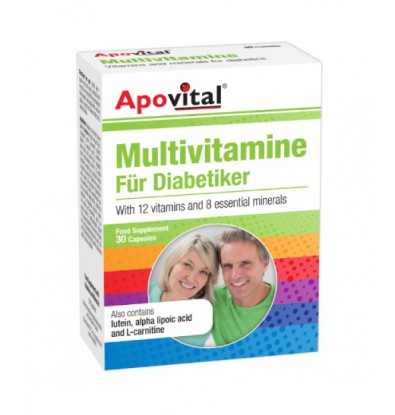 کپسول مولتی ویتامین دیابتی آپوویتال یک همراه روزانه کامل برای افراد دیابتی است. این محصول با ترکیب 12 ویتامین و 8 ماده معدنی به همراه لوتئین، آلفا لیپوئیک اسید و ال-کارنیتین تهیه شده و هر روز از بدن شما حمایت میکند تا مدیریت سبک زندگی دیابتی آسانتر شود. حضور ریزمغذیهای آنتیاکسیدانی در کنار ترکیبات هدفمند، انتخابی مطمئن برای تأمین نیازهای روزانه شما است.